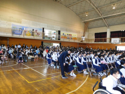 生徒総会の後、表彰伝達を行いました。多くの生徒の活躍を、全校生徒が「本気の拍手」で賞賛しました。